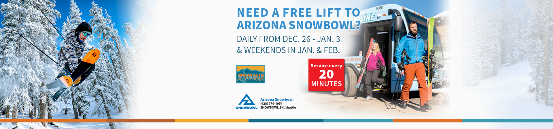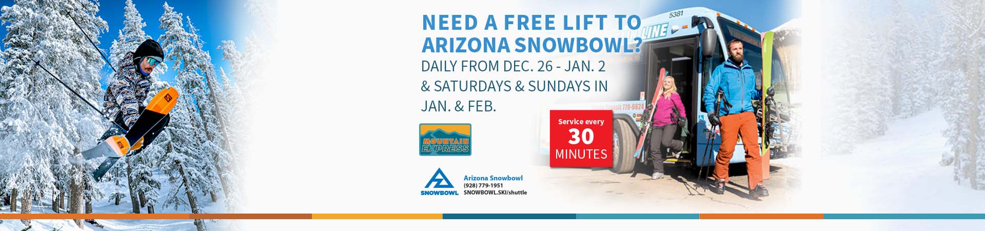 FLAGSTAFF, AZ (December 22, 2025) – This year’s Mountain Express transit service between downtown Flagstaff and Arizona Snowbowl kicks off on Dec. 26, featuring buses departing downtown about every 20 minutes, a free park-n-ride at Flagstaff High School and new this year – service through March. Mountain Express is a partnership between Arizona Snowbowl and...